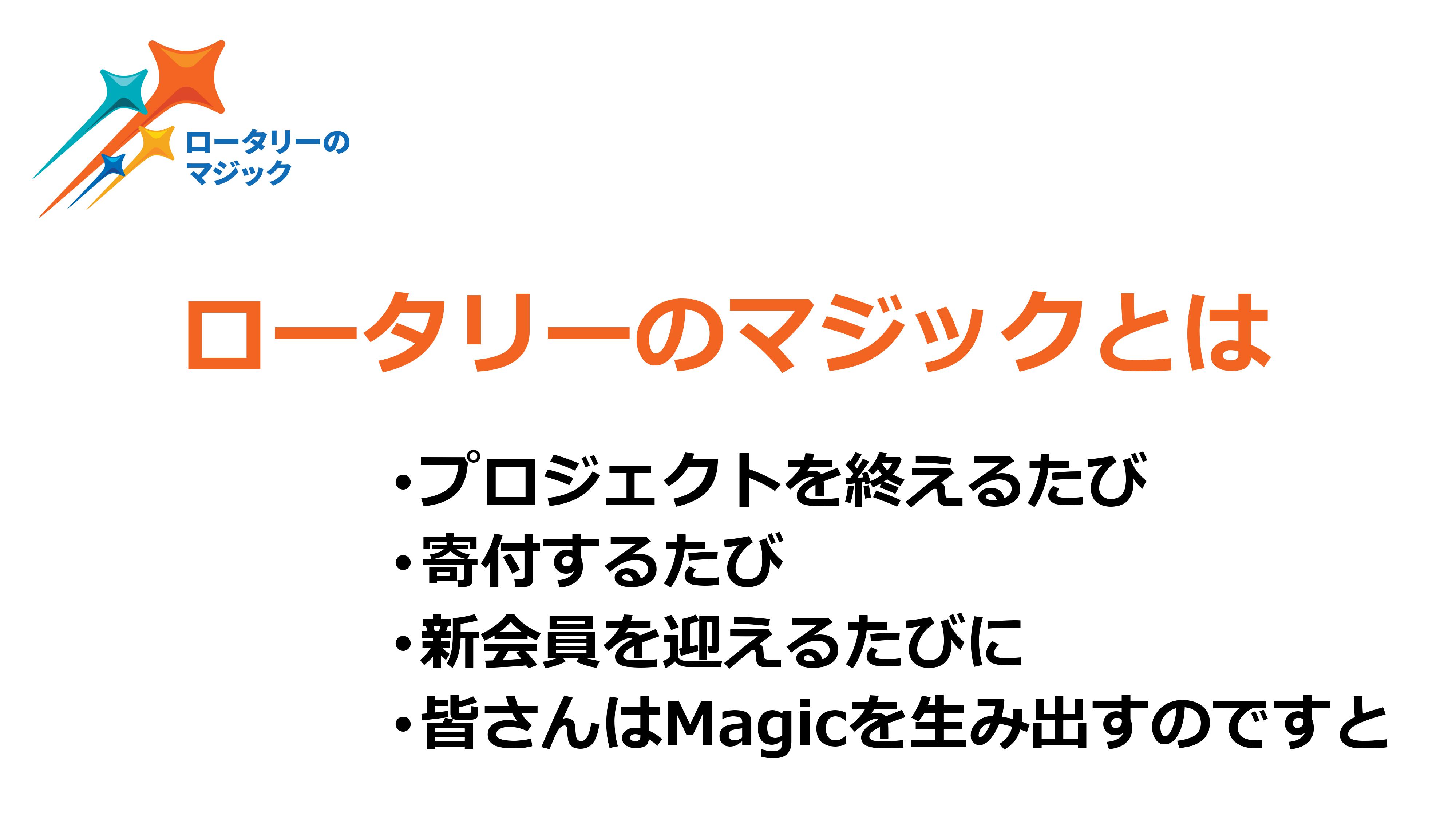「アーチック会長の言うマッジックとは 多くの人々を救うロータリーの力を認識してこれらをさらに広げようという事です。