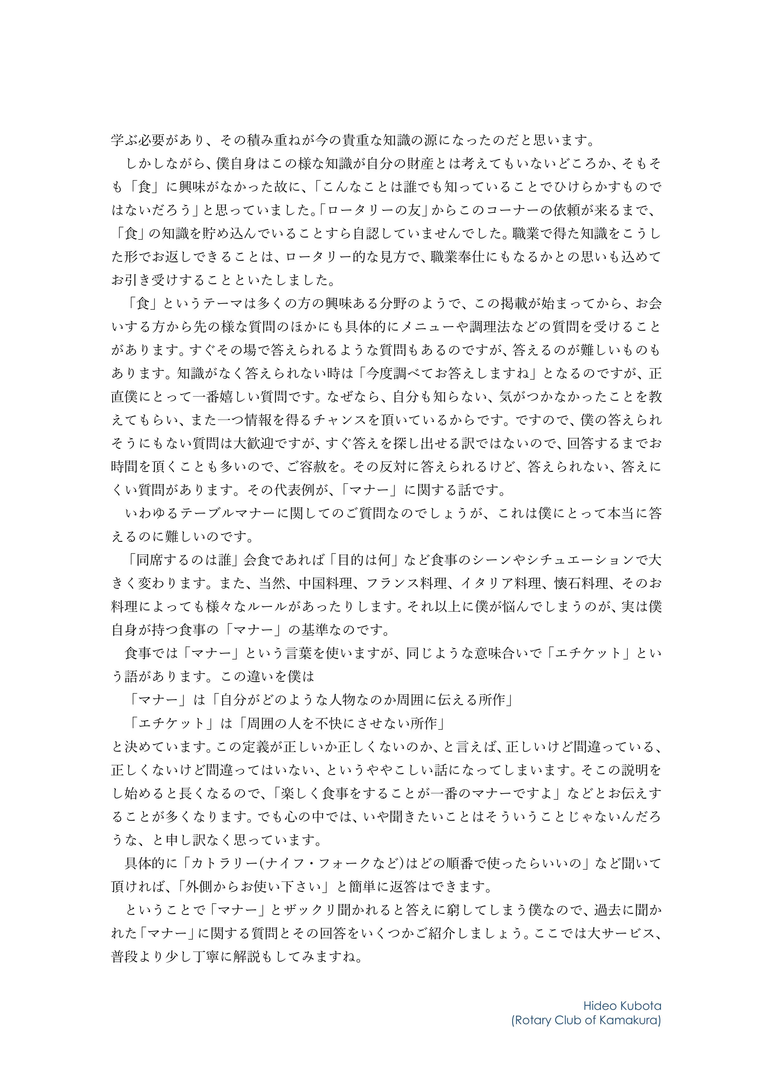 卓話『雑誌月間に寄せて』 楽しい食事を