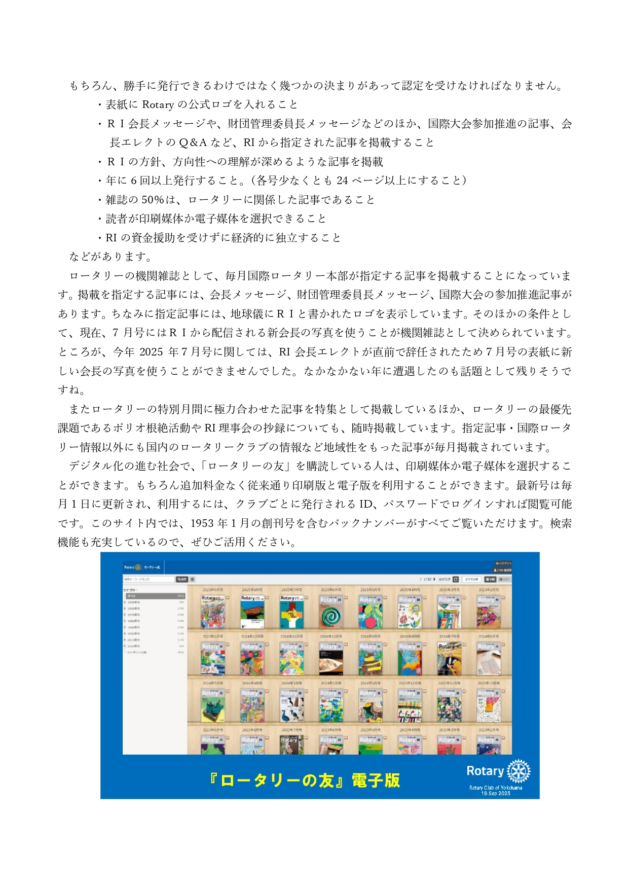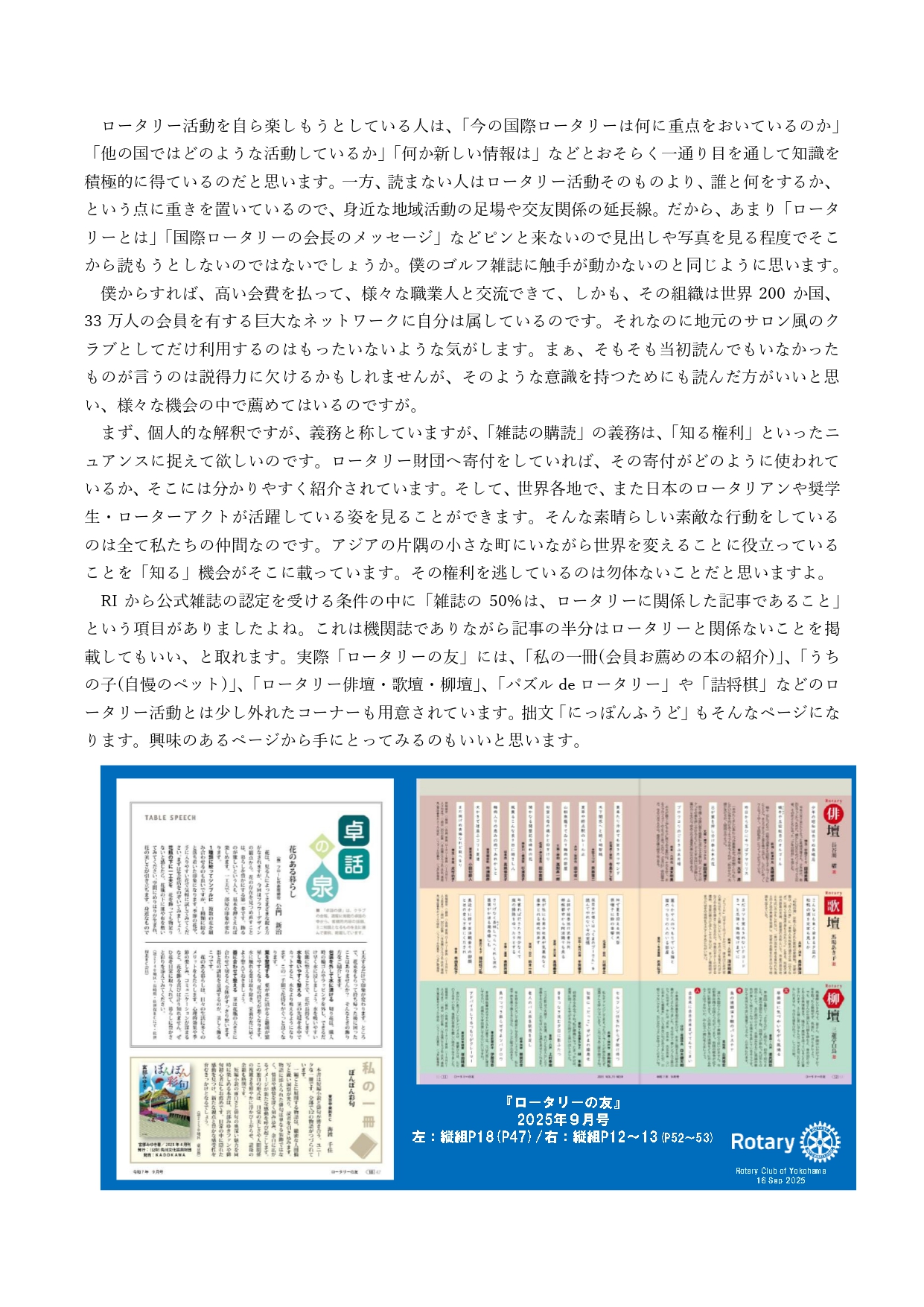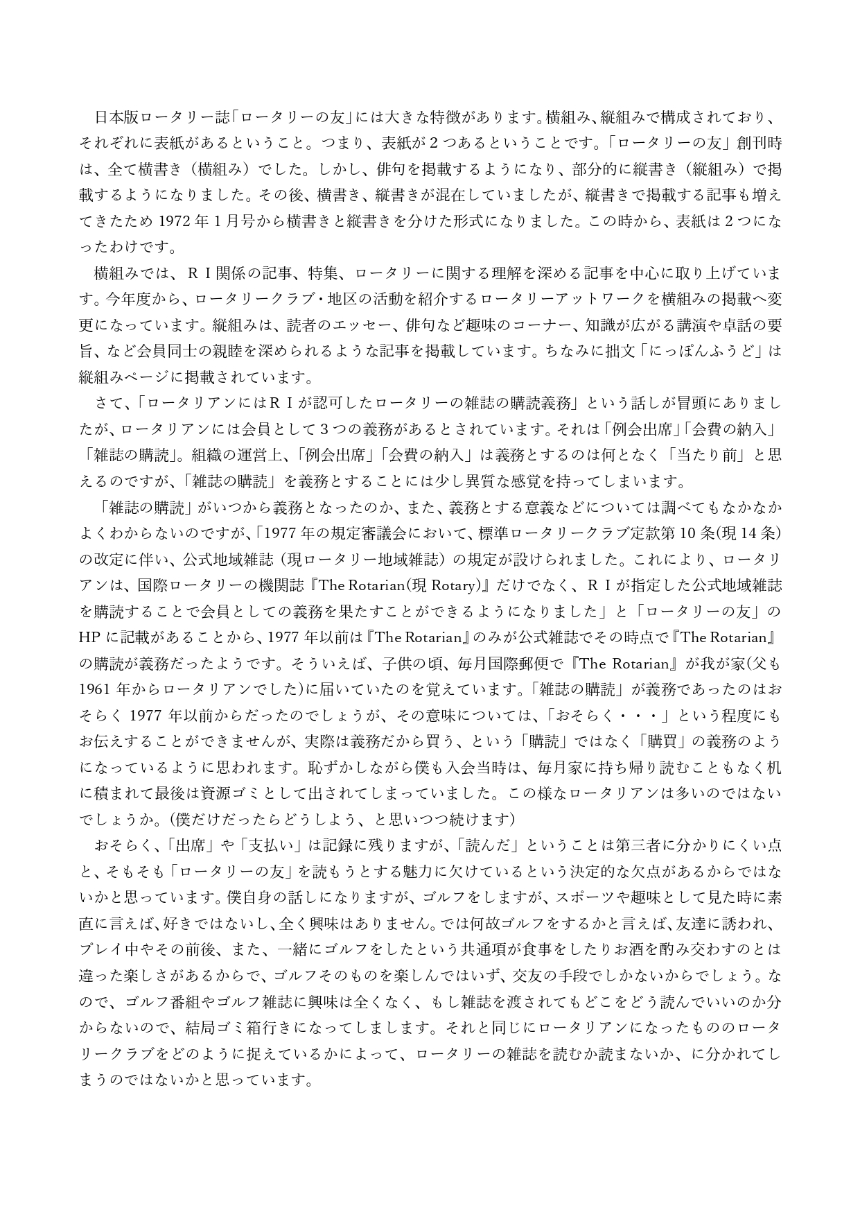 来月版のロータリーの友と当該者には一緒に発送致します。