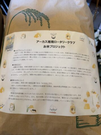 今年度のお米プロジェクトの実施については、これまでの例会でもお伝えしてきました。当初は寄付として活用するB級米を300kg程度確保できるよう残してあるものと思っていたのですが、改めて確認すると@25kg×30袋=750kgも残っており(・・・というより父が残してくれてあり)、精米すると正規米より目減りするとはいえ600kg程度とかなりの量を寄付できる事が見込めたため、急遽寄付先を二カ所にすることとさせていただき、一カ所は当クラブの出身地である第一グループの横須賀で、そしてもう一カ所は現在所属の第三グループの藤沢で活動されている子ども食堂に寄付させていただくこととなりました。