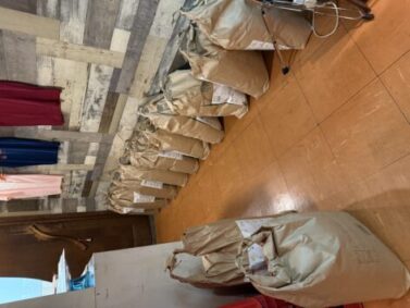 「きなこカリー」の石川さんのはなしでは、備蓄米なども申請して活用しているそうですが、申請できる一回あたりの量には限りがあるそうで、また他にもお米を寄付して下さる所もあるそうですか、今回どちらも切れかかってきたところでそのつなぎになったということで大変喜んでいただきました。